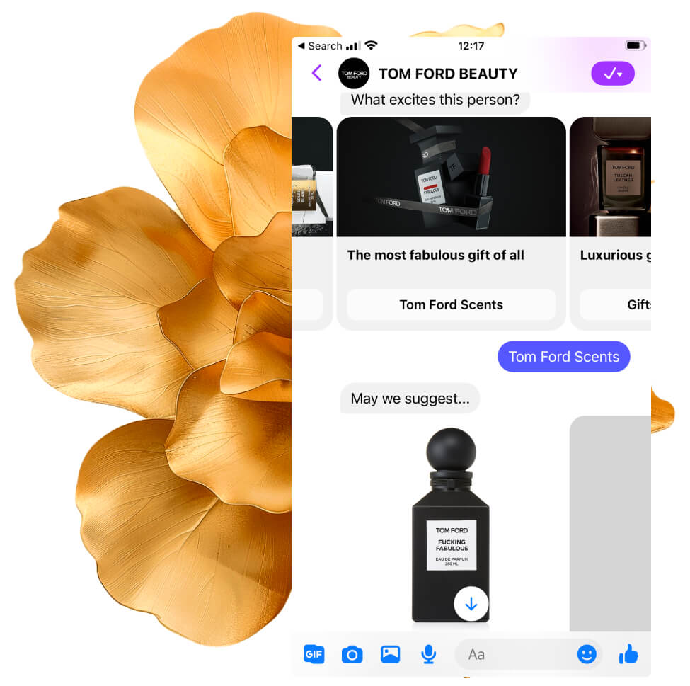 Synapora developed an AI-powered Facebook Messenger bot as an integral part of the Tom Ford Beauty Gift Finder Campaign. This Conversational AI solution provided a more human and interactive way for the brand to connect with potential and existing customers before Christmas. It transformed the holiday shopping journey into an engaging and personalized experience.