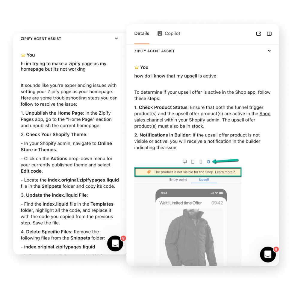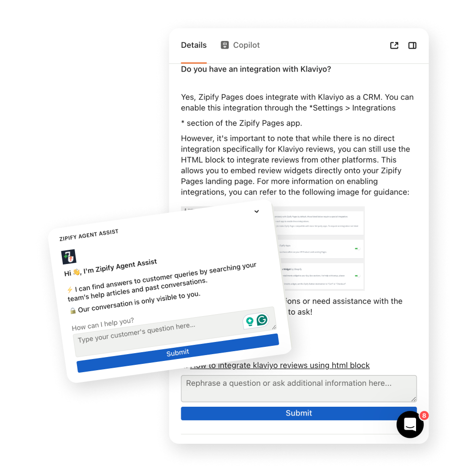 This custom-built digital helper serves as an invaluable resource for Zipify’s support team, providing real-time assistance and knowledge retrieval within their existing workflow.