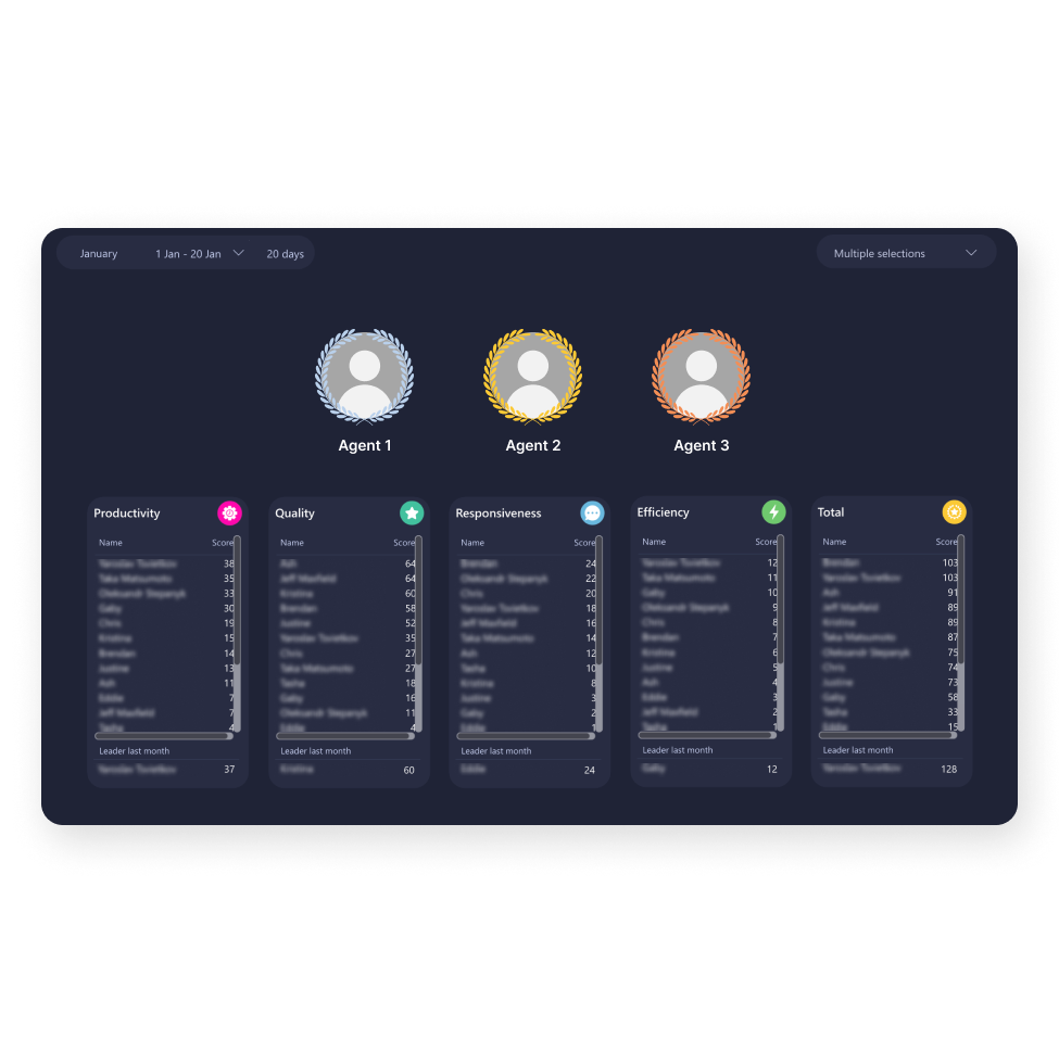 Leaderboard & Agent Recognition: A bit of friendly competition can be a powerful motivator. The dashboard incorporates a leaderboard that ranks agents based on performance, fostering a culture of excellence and recognizing top performers who consistently deliver exceptional support.